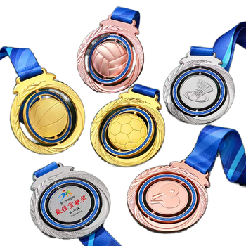 Медаль для соревнований по футболу, баскетболу, волейболу, бадминтону, настольному теннису, двойное золотое покрытие, литой цинковый сплав, вращающаяся, на заказ